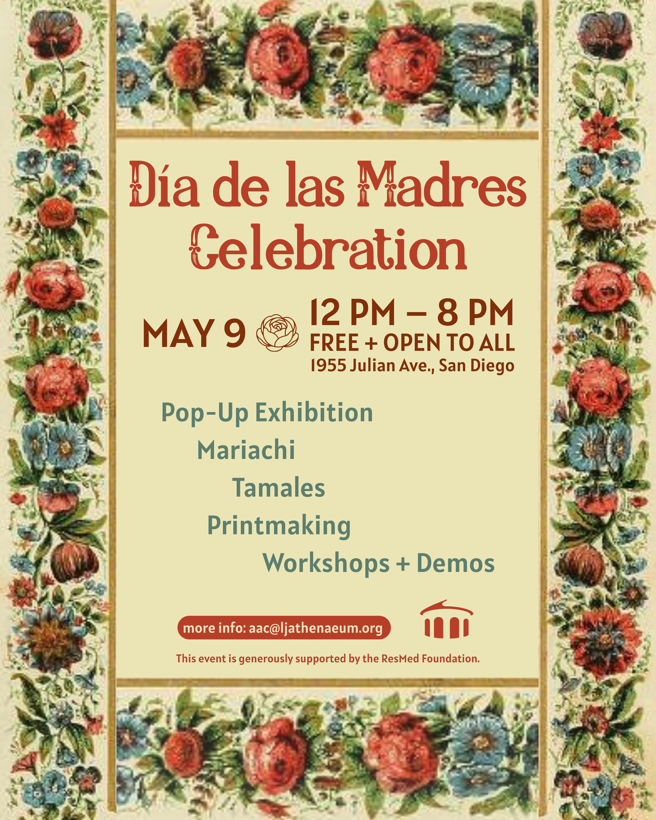 Cada año, alrededor del Día de las Madres, el Athenaeum Art Center (AAC) abre sus puertas a la comunidad para una festiva exposición pop-up bilingüe que honra a las madres y figuras maternas de todas las culturas. Inspirándose en las tradiciones del Día de las Madres, con raíces en las tradiciones culturales mexicanas y en el espíritu del fin de semana del Día de las Madres, este evento anual reúne a artistas locales, familias y vecinos para una tarde y noche de arte, música, demostraciones de artesanía y convivencia.