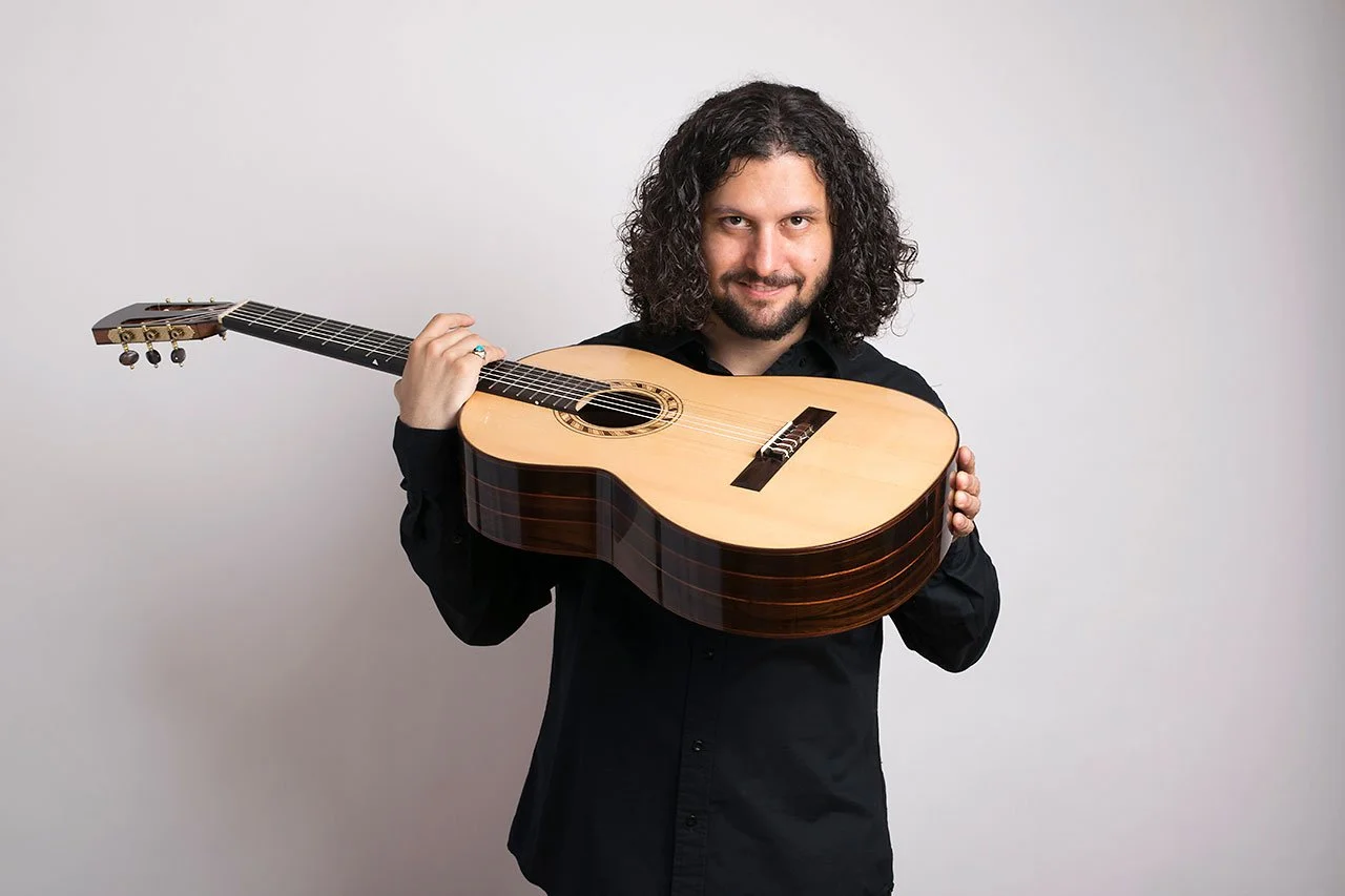 Classical guitarist Larget-Caplan has premiered over 110 compositions, directs the New Lullaby Project and Spanish classical music & flamenco dance ensemble ¡Con Fuego! His groundbreaking arrangements and recording of the music of John Cage are the first to be sanctioned by the estate and issued by Edition Peters and the UK label Stone Records. He has eight acclaimed solo albums and multiple publications with the American Composers Alliance. He has awards from the Société Académique Arts-Sciences-Lettres of Paris, France for his trailblazing work in music, and was Musician in Residence at the Banff Centre for Arts and Creativity in Canada. His first album of compositions ‘honey cadence’ was released in April 2022.