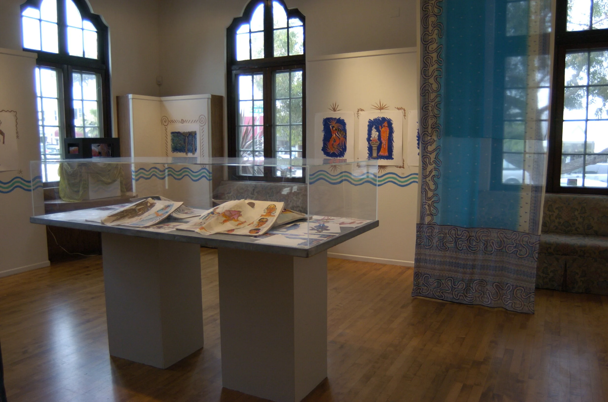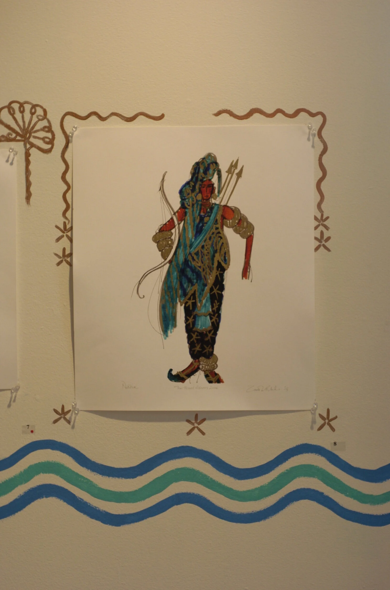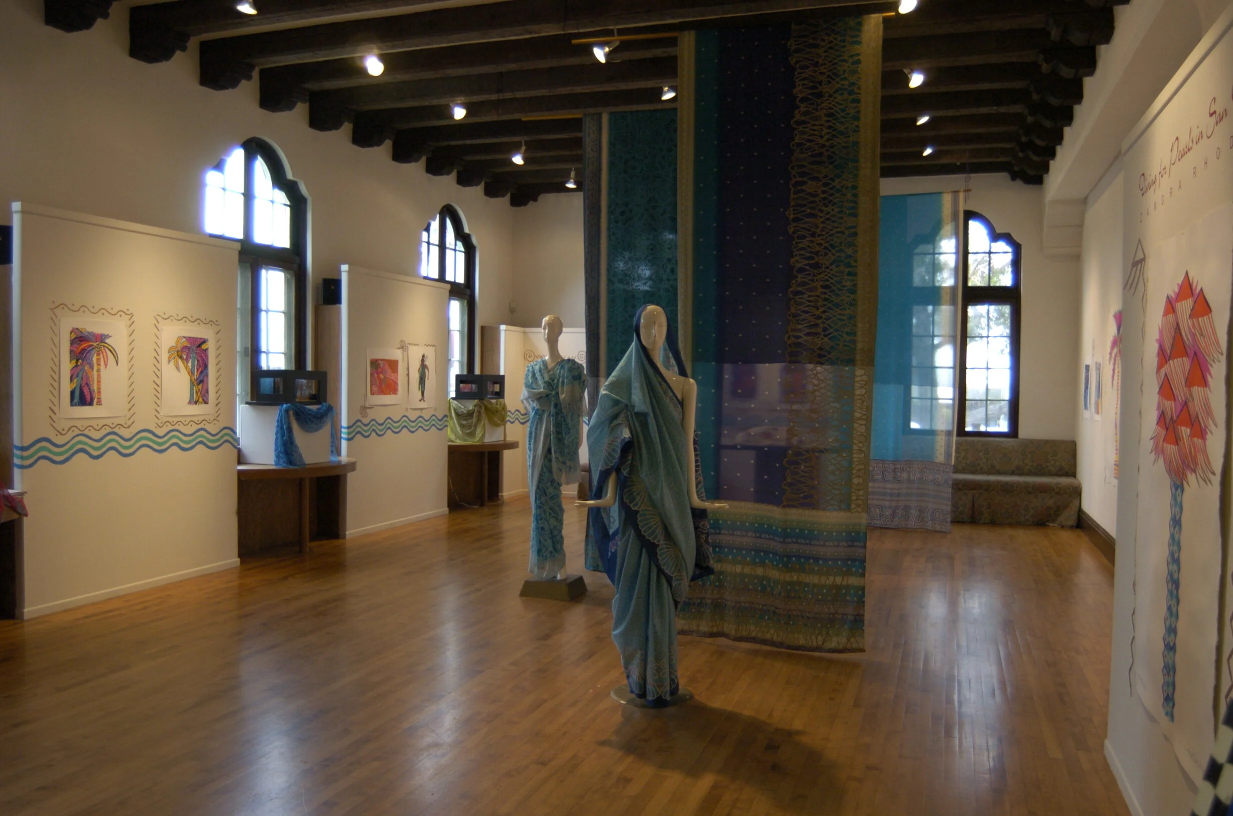 An exhibition of Rhodes’ work and plans for the San Diego Opera’s production of Bizet’s opera, “The Pearl Fishers, presented in San Diego February 2004. The exhibition included sketches, macquettes, saris, fabric samples and models.