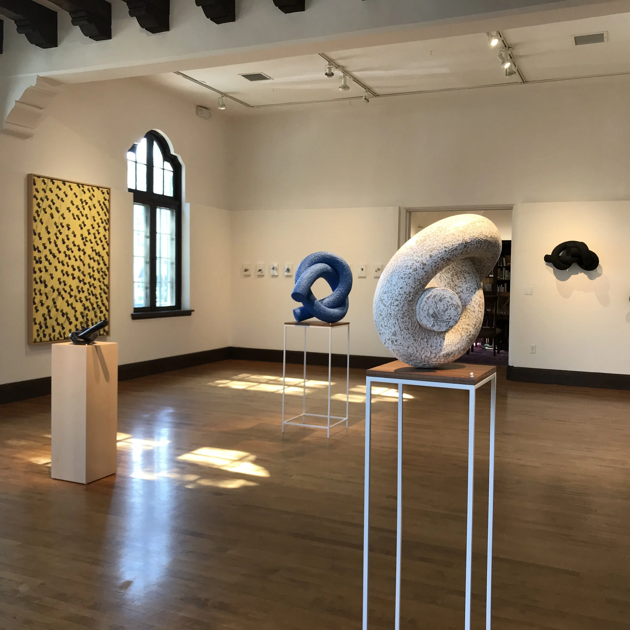 Three of San Diego’s most well-respected artists, as well as long-term residents, present recent work. Richard Allan Morris exhibits new black and white abstract drawings. Born in Long Beach in 1933, Morris has exhibited his work at MCASD, Quint Gallery, and is represented by R.B. Stevenson Gallery, La Jolla. Allan Morrow, originally from Spokane, WA, moved to San Diego in 1953. He was recruited by the Art Center College of Design yet in 1970 was drafted to serve in the US Army in Viet Nam. He graduated with a BA in painting and printmaking from San Diego State University. The paintings in this exhibition are from the Baja series that began in 1975 and are inspired by the deserts of the southwest and fishing trips in Baja California, Mexico. Tom Driscoll, as San Diego native, presents his most recent sculptures from his “Knot Series.” Driscoll’s work has been exhibited at the Museum of Contemporary Art San Diego, Quint Gallery, La Jolla and Ice Gallery, San Diego. This exhibition is funded in part by grants from the City of San Diego Commission for Arts and Culture and the County of San Diego. Painting Yellow Baja Three, 2016, purchased with funds from the Art Committee: Athenaeum Permanent Collection 2018.12. Work on paper, #34, 2003, purchased with funds from the Art Committee: Athenaeum Permanent Collection 2018.06. In-house catalogue.