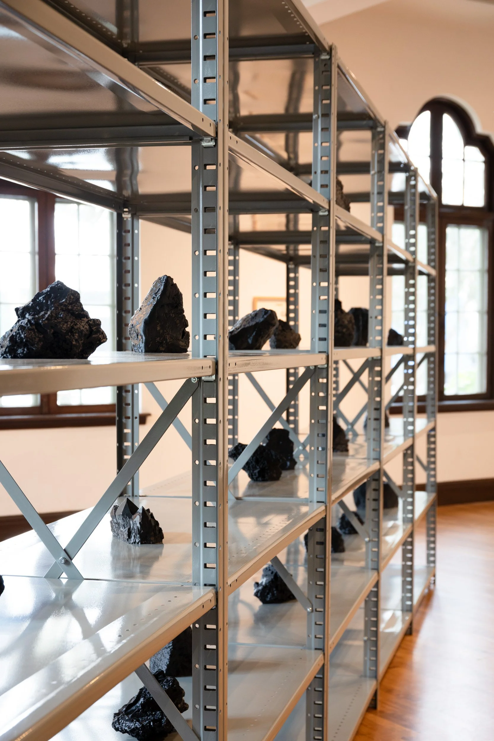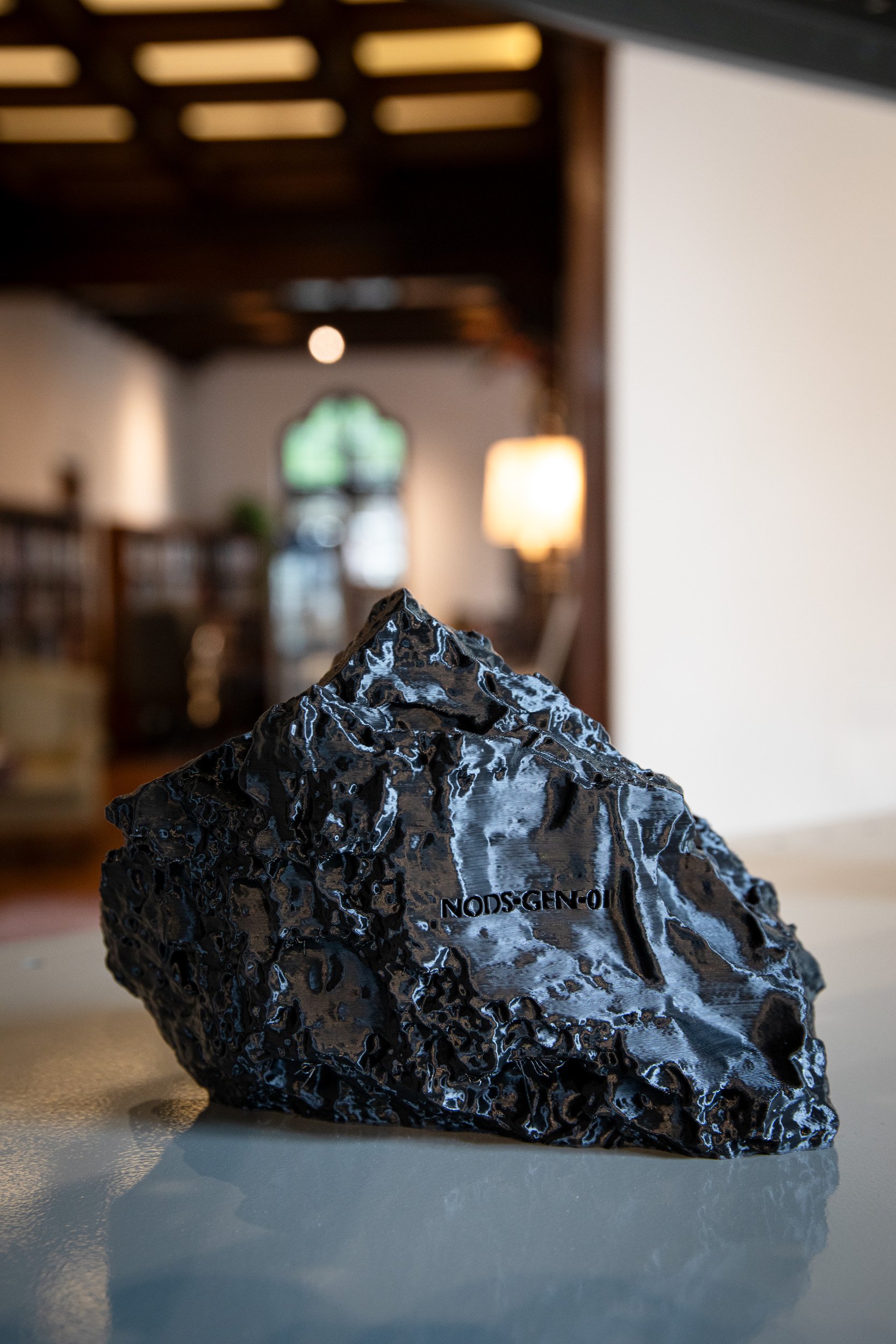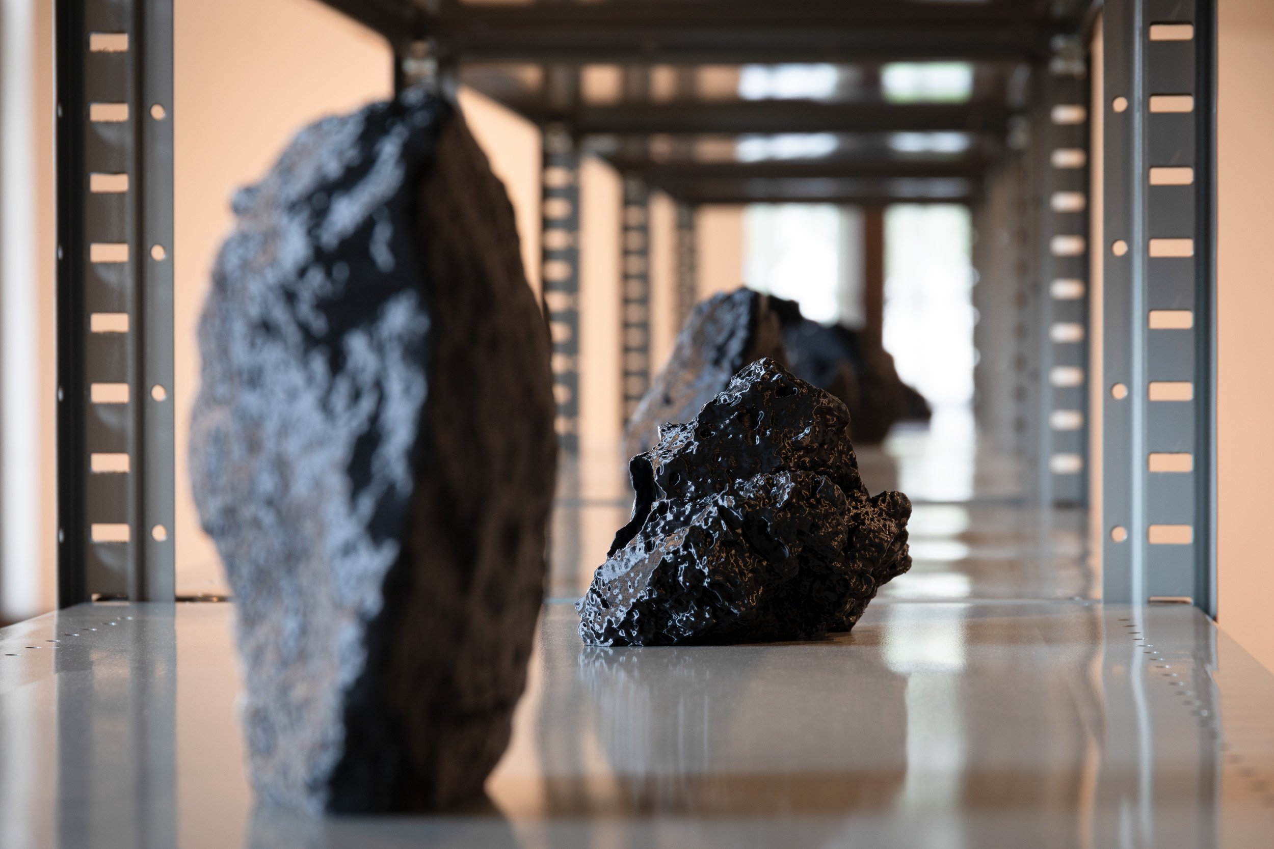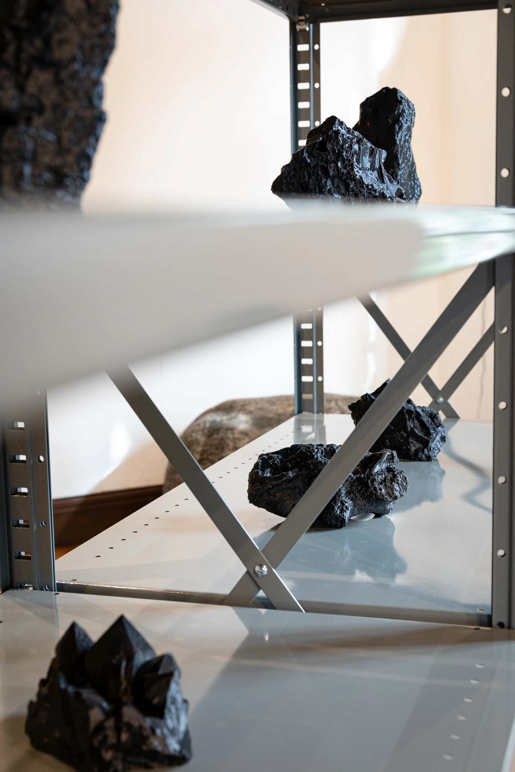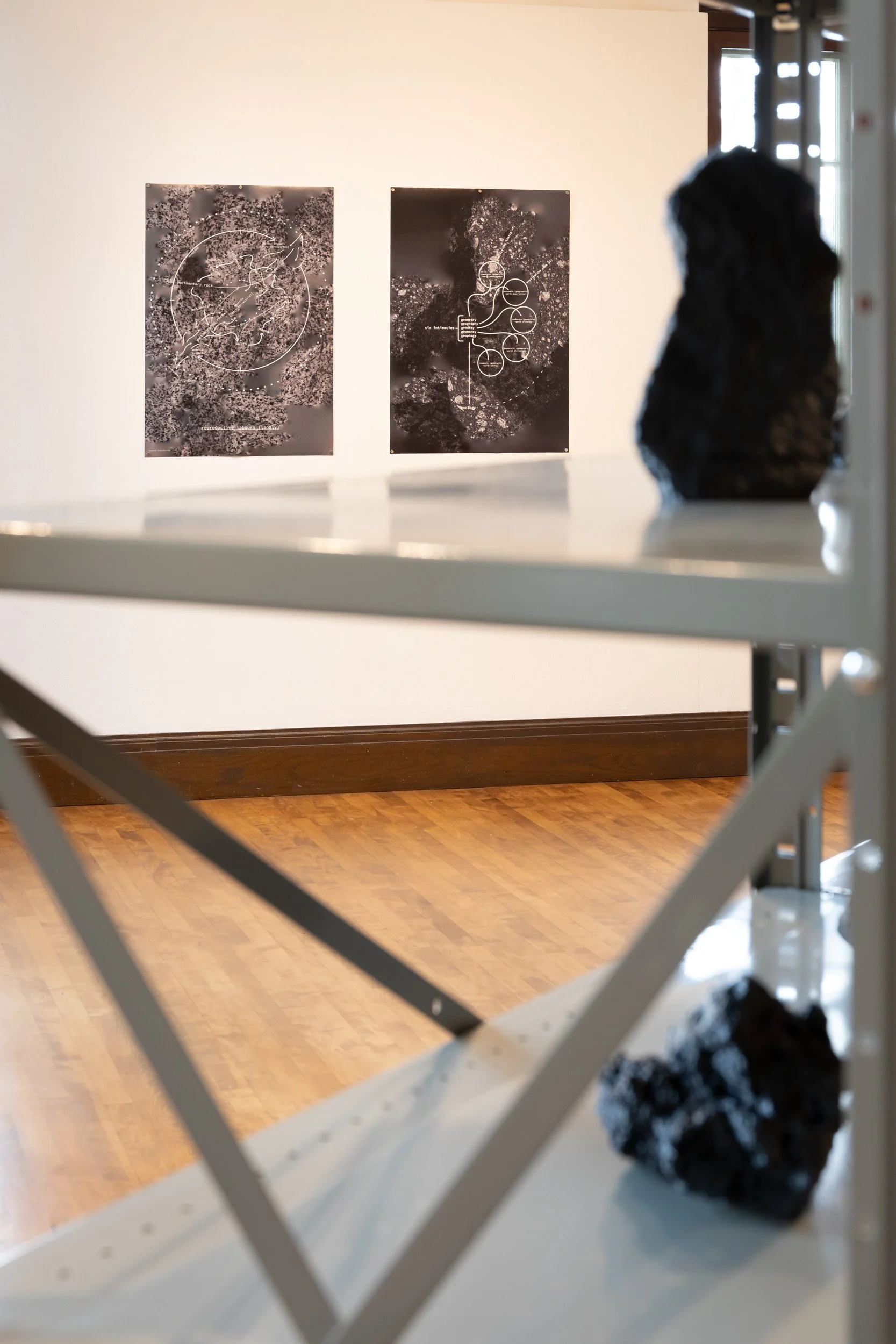 Isivivane is a Zulu word which translates to a "pile of stones,” similar to a cairn, which marks a spiritually or historically significant site. Isivivane also means to make an individual contribution to a collective future. Manufactured daily by a 3D-printer on site, the new rocks become part of what the artist calls a Black Earth Library. This is an effort that has arisen from discussions with geologists and geology museum curators concerning restitution and repatriation of culturally significant objects. In asking the host institution to create digital and physical copies of more or less significant rocks, stones, and other small geological objects, Dennis suggests a geo-social system not built by a single person, but by many over time. Isivivane will be accompanied by related sculptures and drawings, and displays of rocks and minerals selected by the artist from local collections.