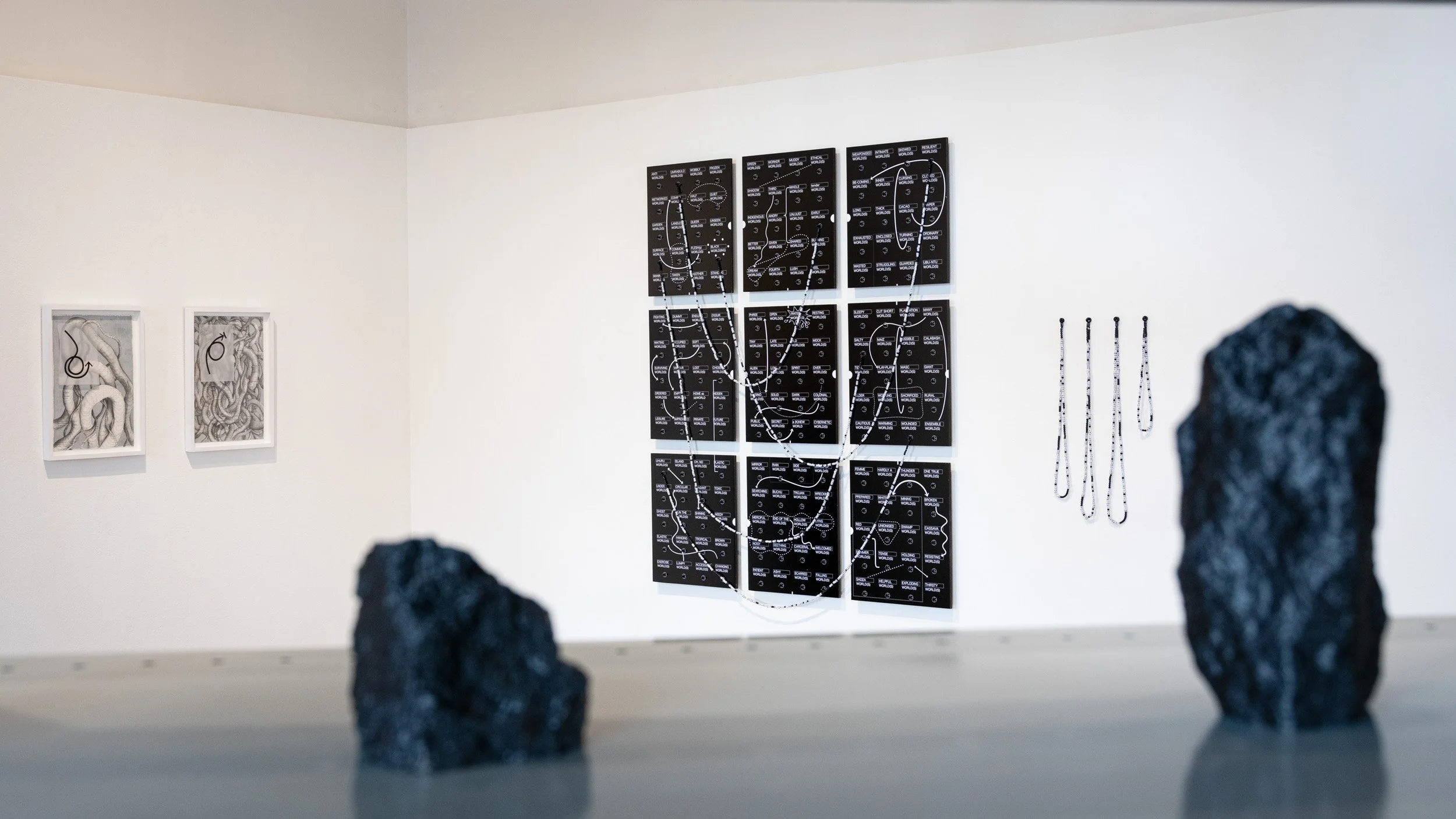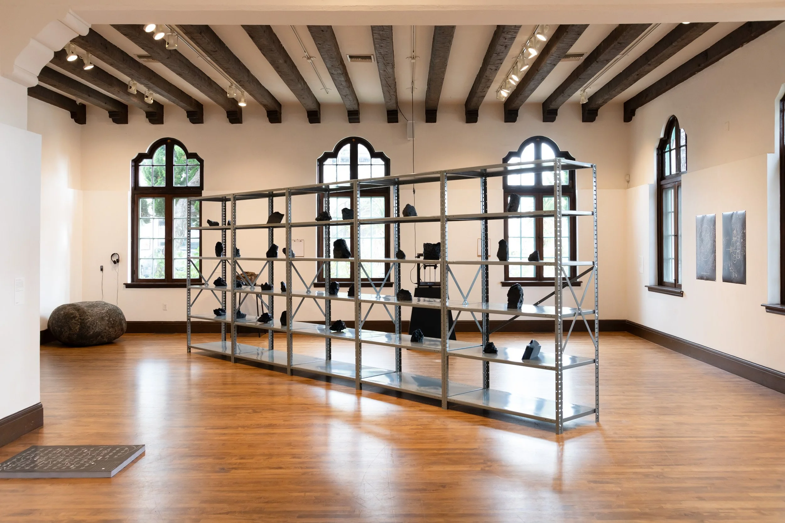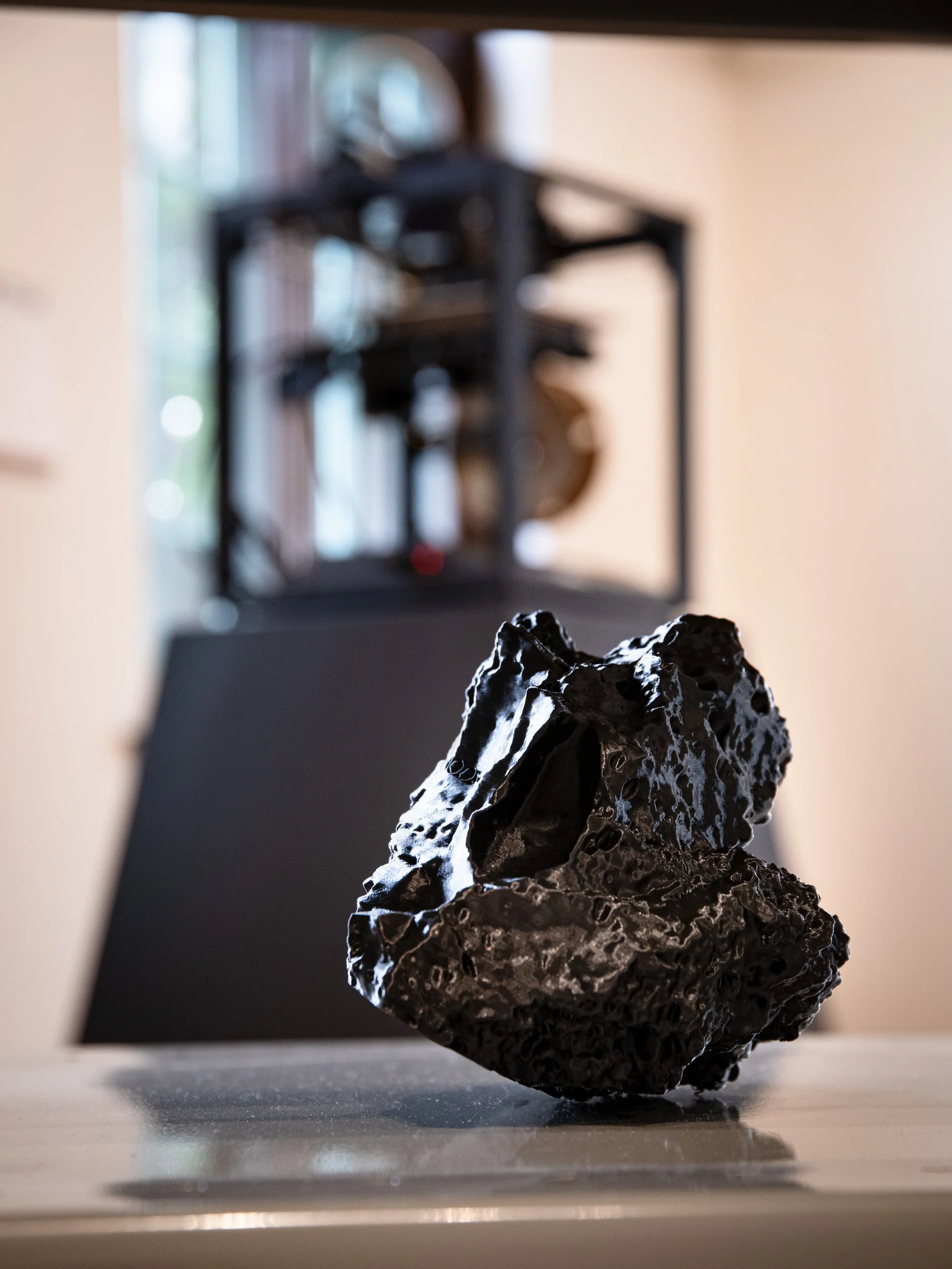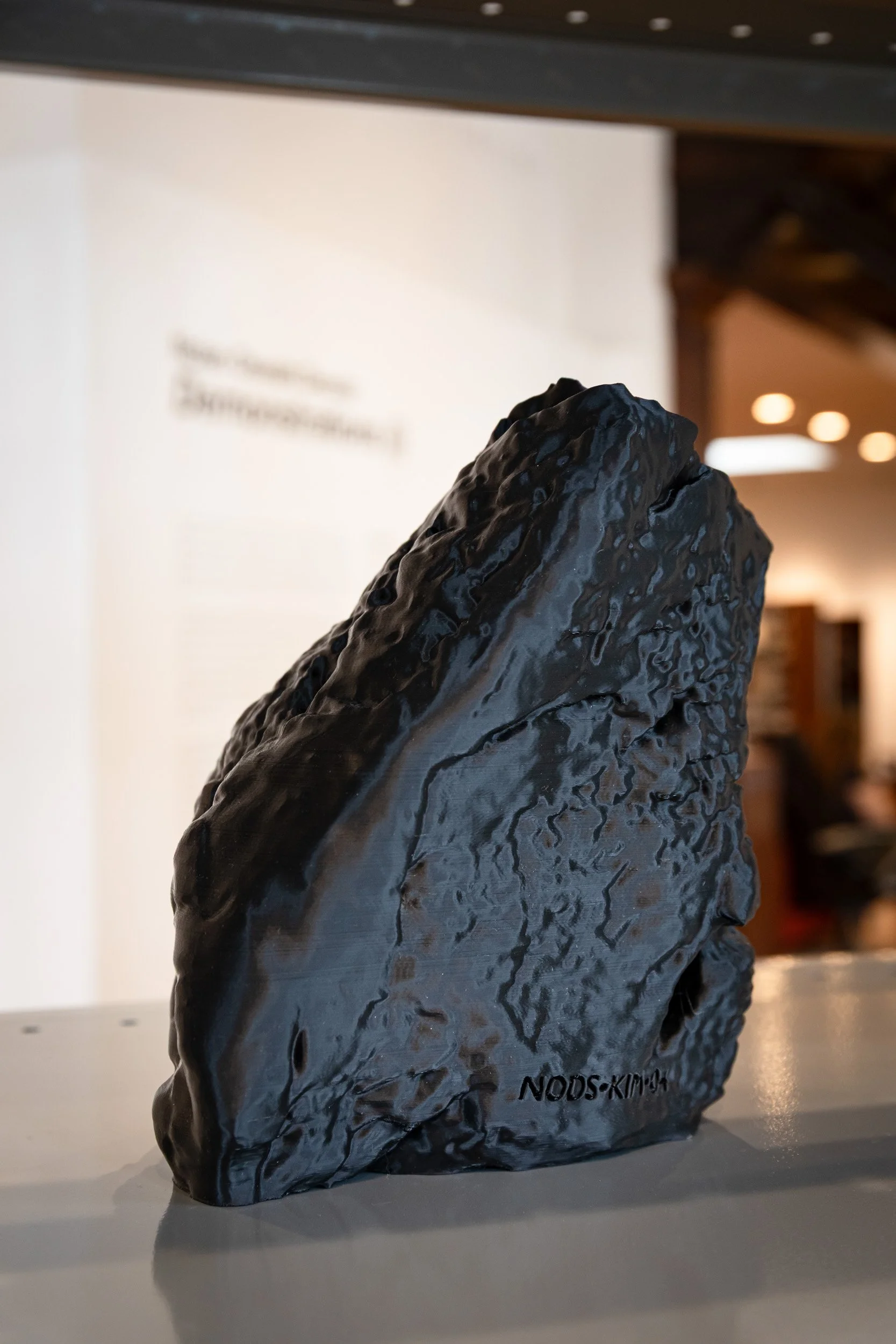 Isivivane is a Zulu word which translates to a "pile of stones,” similar to a cairn, which marks a spiritually or historically significant site. Isivivane also means to make an individual contribution to a collective future. Manufactured daily by a 3D-printer on site, the new rocks become part of what the artist calls a Black Earth Library. This is an effort that has arisen from discussions with geologists and geology museum curators concerning restitution and repatriation of culturally significant objects. In asking the host institution to create digital and physical copies of more or less significant rocks, stones, and other small geological objects, Dennis suggests a geo-social system not built by a single person, but by many over time. Isivivane will be accompanied by related sculptures and drawings, and displays of rocks and minerals selected by the artist from local collections.