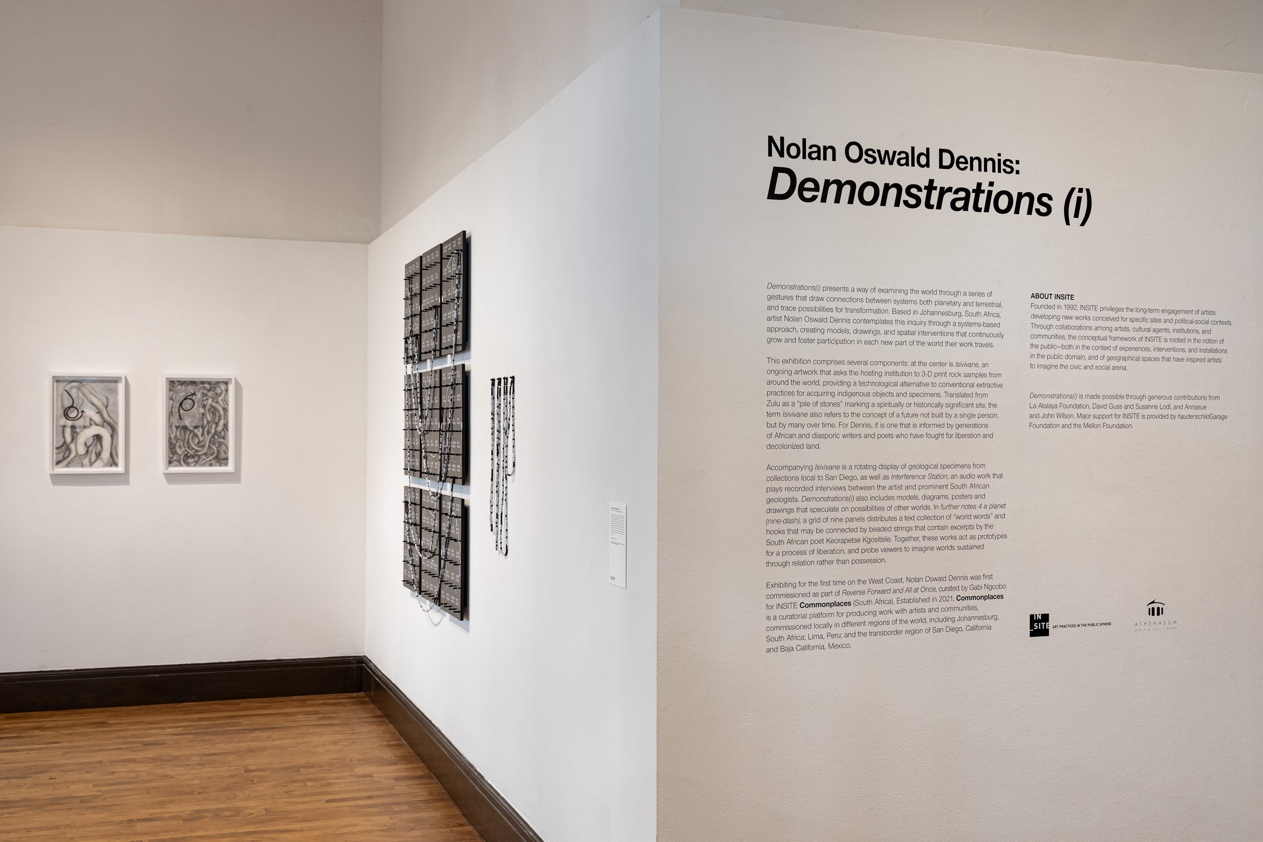 INSITE is pleased to announce Nolan Oswald Dennis: Demonstrations (i), opening at the Athenaeum Music & Arts Library in La Jolla, California, this October. Nolan Oswald Dennis (b. 1988, Lusaka, Zambia) is an artist based in Johannesburg, South Africa. Informed by the study of geological and planetary systems—and situated within African and diasporic relations to the land, cosmos, and anti-colonial political structures—Dennis’s work approaches the world as it is while mapping possibilities for transforming it. Demonstrations (i) marks the West Coast premiere of Isivivane, an ongoing project by Dennis that replicates rock specimens from geology museums and university departments in South Africa and parts of the world where the work has been shown. Originally commissioned for INSITE Commonplaces in Johannesburg in 2021, this project has since traveled to the Kunstinstituut Melly in Rotterdam, Netherlands; the Swiss Institute in New York; and Gasworks in London.
