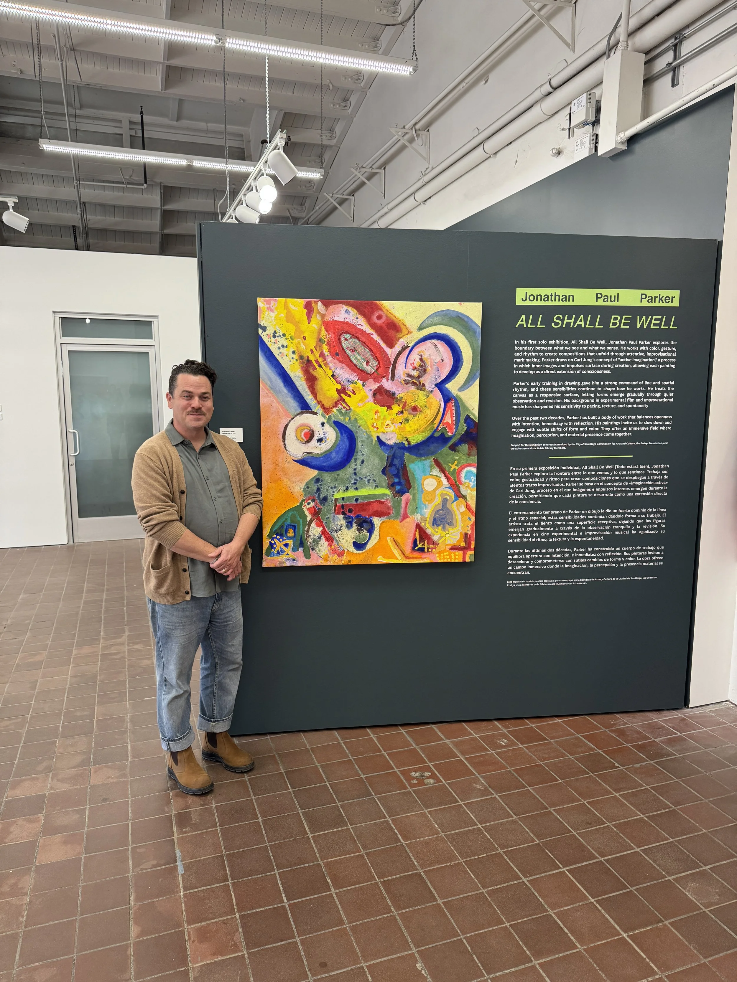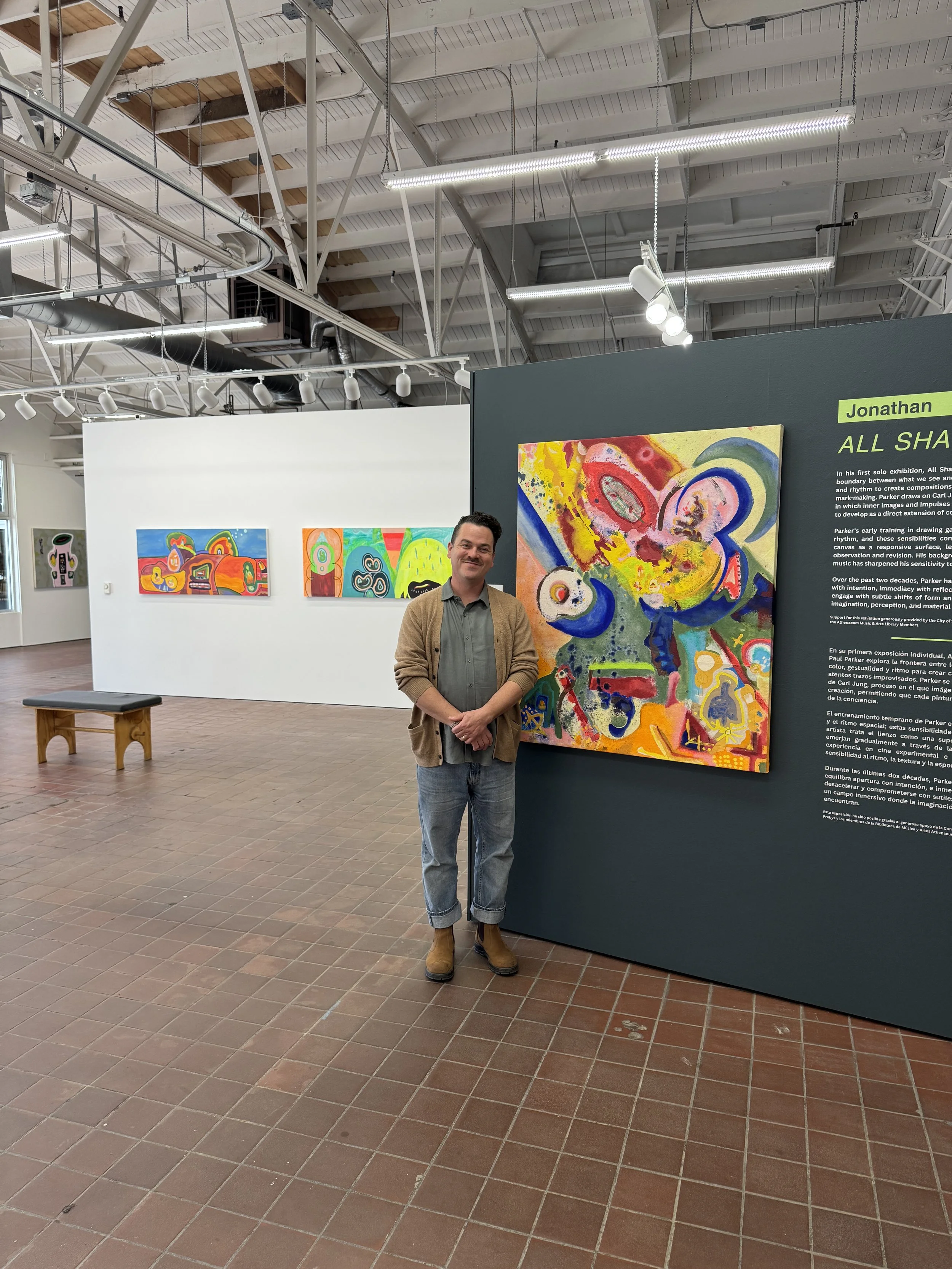 The Athenaeum Art Center presents All Shall Be Well, Jonathan Paul Parker’s first solo exhibition, on view January 10–March 7, 2026. Featuring paintings and explorative drawings, Parker’s practice centers on an intuitive, process-based approach to painting that explores the threshold between perception and inner experience. Using color, gesture, and rhythm, he works in a state of focused openness that allows intuitive and archetypal forms to surface. His process draws on the idea of active imagination, where inner images and impulses rise to awareness and shape the direction of the work.