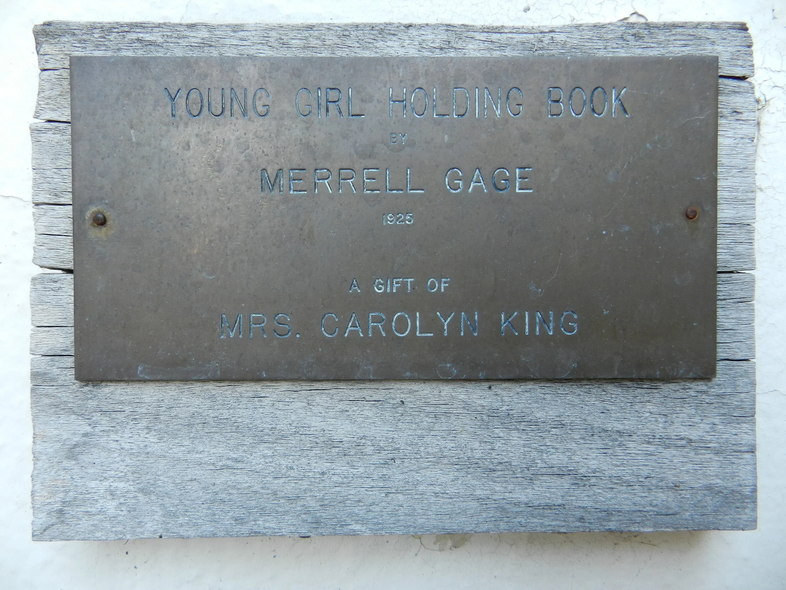 The sculpture “Young Girl Reading” (40” x 70” bronze panel), a gift of Mrs. Carolyn King, was dedicated on December 12, 1925. It was located in the reading court until the 1950s; since then it has been on the Athenaeum’s patio.