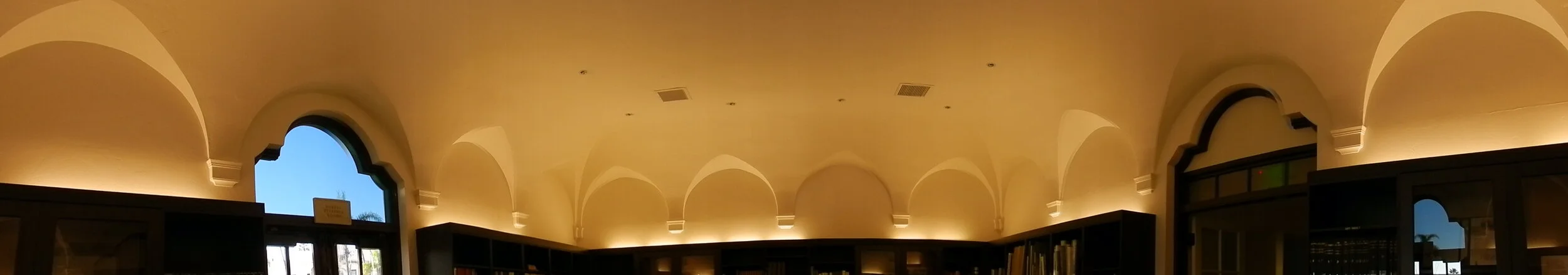 The 1921 ornamental ceiling designed by William Templeton Johnson still embellishes what is now the Athenaeum’s Max & Melissa Elliott North Reading Room (originally the library’s Gallery). It consists of round arches which arise on small consoles and cut into the haunch of the ceiling. It surrounds the room’s ceiling like a large arched frieze.